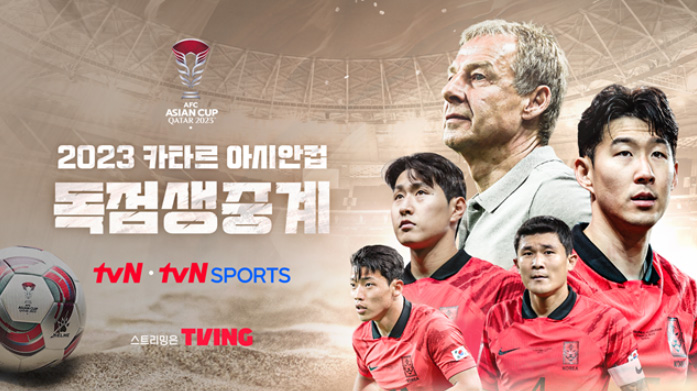 아시안 컵 독점(전경기) 중계는 TvN SPORTS와 쿠팡플레이(OTT) 두 곳이며 이 두 채널은 유료입니다.